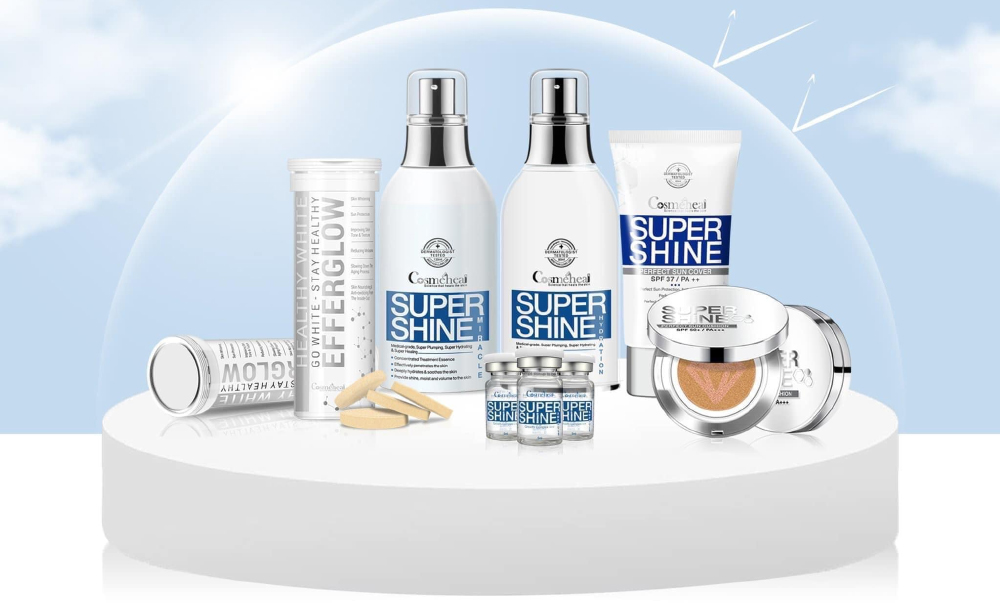 - CosmeHeal Super Shine Miracle - Nước Thần Căng Bóng Da: là sản phẩm kế thừa các giải pháp công nghệ tế bào, tác động vào quá trình sinh học của tế bào da, thúc đẩy quá trình tái tạo, kích thích tăng sinh tế bào biểu mô, tập trung giải quyết các vấn đề thiếu hụt dưỡng chất, kiến tạo làn da hư tổn, lão hóa.