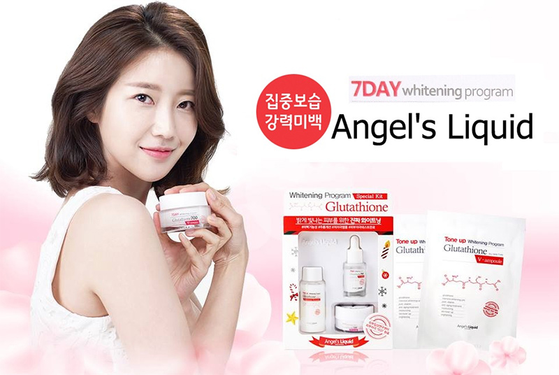 - Angels Liquid 7 Day Whitening Program Glutathione+ Niacinamide 700 V-Cream - Kem Dưỡng Trắng Da: là một sản phẩm của hãng Angel Liquid đến từ Hàn Quốc đang là một sản phẩm siêu hot cải thiện màu da trắng sáng được các cô gái săn lùng. Chiết xuất từ thiên nhiên, lành tính và không làm tổn thương da, làn da bạn sẽ bật tone lên hiệu quả, hỗ trỡ giảm nám tàn nhang, đồng thời bảo vệ tế bào da, phục hồi làn da xỉn màu cho bạn một làn da sáng mịn.