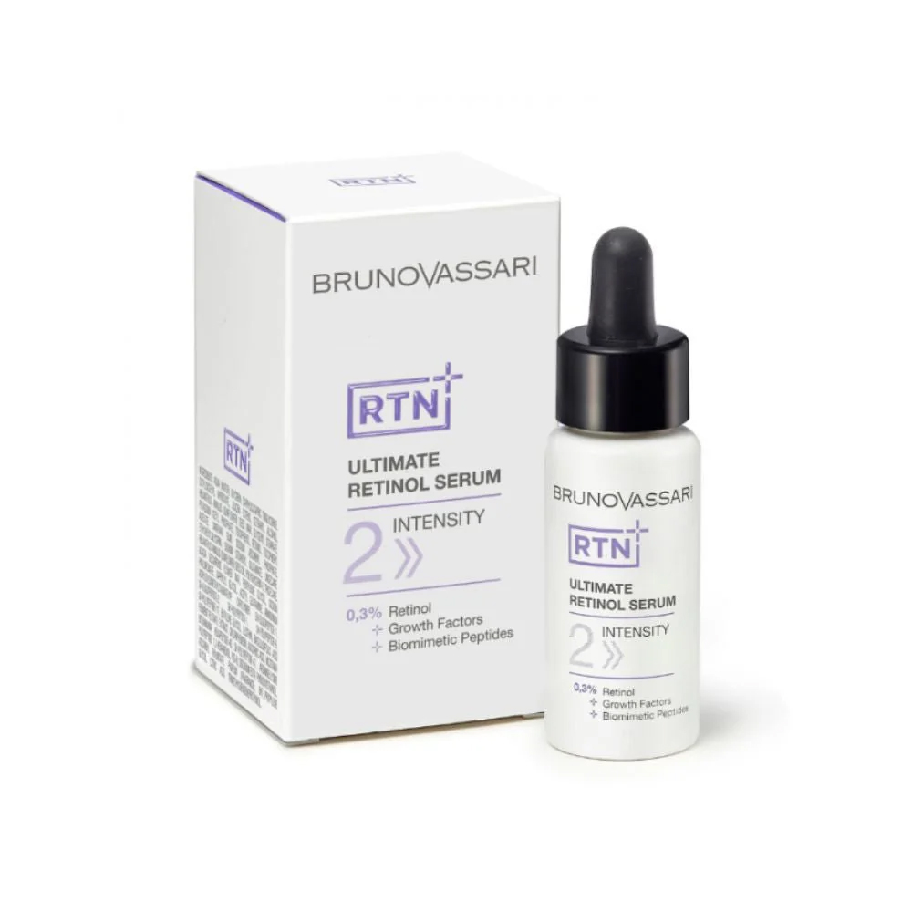 Serum Retinol Dưỡng Da Ngừa Lão Hóa Bruno Vassari RTN Ultimate Retinol Serum Intensive 2 là tinh chất retinol nồng độ cao được thiết kế dành cho làn da đã quen với retinol, giúp nâng cao hiệu quả chăm sóc da chuyên sâu và cải thiện rõ rệt diện mạo làn da theo thời gian.