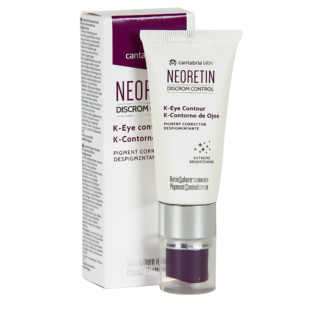 Kem Dưỡng Giảm Quầng Thâm Mắt Cantabria Labs Neoretin Discrom Control K-Eye Contour là kem vùng mắt chuyên sâu hỗ trợ cải thiện sắc tố và làm sáng vùng da quanh mắt. Sản phẩm ứng dụng công thức tiên tiến từ Neoretin Discrom Control với các hoạt chất đặc trưng giúp giảm thâm sạm, làm đều màu da và tăng độ tươi sáng cho vùng mắt, đồng thời dưỡng ẩm nhẹ, làm mịn bề mặt da một cách êm dịu.