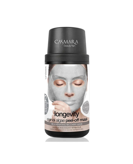 Mặt Nạ Hỗ Trợ Làm Săn Chắc, Trẻ Hóa Da Casmara Longevity Original Algae Peel-off Mask là mặt nạ tảo dạng dẻo ứng dụng công nghệ peel-off đặc trưng, giúp ôm khít bề mặt da và tạo môi trường thuận lợi để các hoạt chất thẩm thấu tốt hơn. Khi sử dụng, mặt nạ dần đông lại thành lớp mềm mịn, mang đến cảm giác mát lạnh và thư giãn, đồng thời hỗ trợ làm mới làn da sau mỗi lần sử dụng.