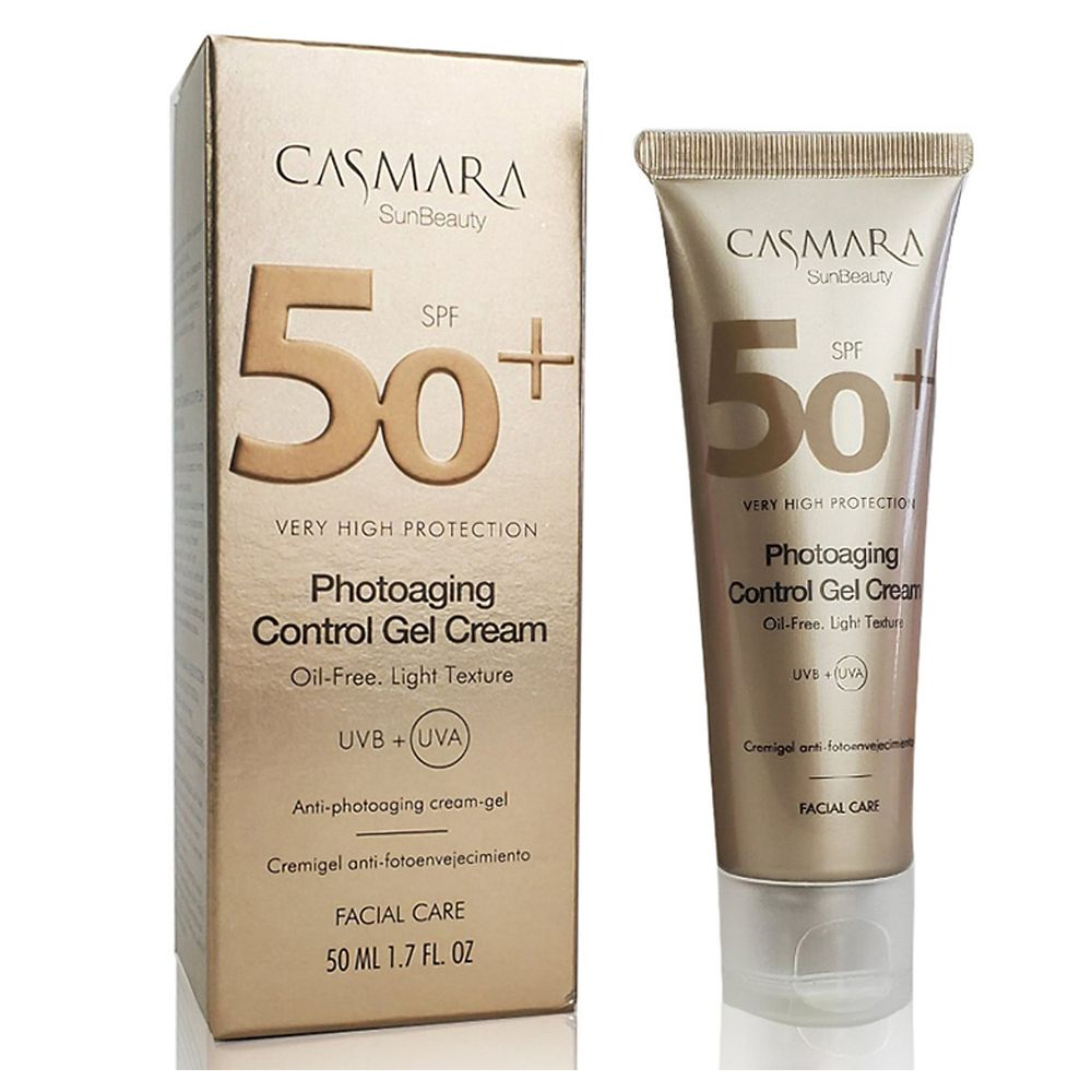 Kem Chống Nắng, Chống Lão Hóa Casmara PhotoAging Control Gel Cream SPF50+ là kem chống nắng dạng gel-cream mỏng nhẹ, kết hợp giữa bảo vệ da trước bức xạ mặt trời và cải thiện các dấu hiệu lão hóa do ánh sáng. Công thức sử dụng hệ màng lọc chống nắng phổ rộng giúp bảo vệ da trước tia UVA, UVB và cả bức xạ hồng ngoại (IR), từ đó hạn chế tác động tiêu cực lên cấu trúc da và duy trì vẻ ngoài tươi trẻ.