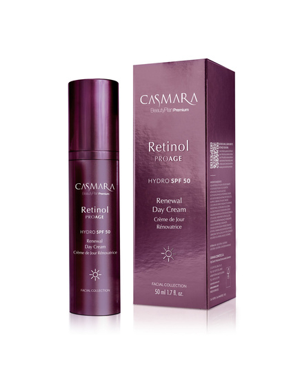 Kem Retinol Chống Lão Hóa Casmara Retinol ProAge Renewal Day Cream SPF50 là kem dưỡng ban ngày đa chức năng, kết hợp giữa chăm sóc da chuyên sâu và bảo vệ da trước tác động của ánh nắng. Công thức ứng dụng retinol thế hệ mới (Bakuchiol) cùng hệ màng lọc chống nắng phổ rộng SPF50, giúp hỗ trợ cải thiện cấu trúc da đồng thời bảo vệ da khỏi tác động của tia UV yếu tố chính gây lão hóa sớm.