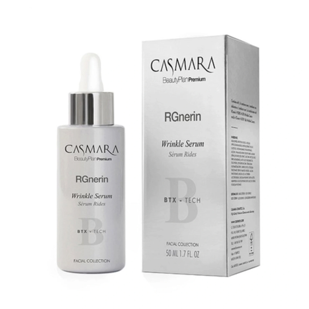 Serum Làm Đầy, Tái Tạo, Làm Mịn Da Casmara RGnerin Wrinkle Serum là tinh chất dạng lỏng “oil-free” ứng dụng công nghệ BTX, tập trung cải thiện cấu trúc da và độ đàn hồi thông qua cơ chế tác động đa chiều. Công thức nổi bật với sự kết hợp của peptide Argireline Amplified® cùng các AHA như Glycolic Acid và Lactic Acid, giúp hỗ trợ làm mịn bề mặt da, thúc đẩy quá trình đổi mới tế bào và cải thiện độ săn chắc tổng thể.