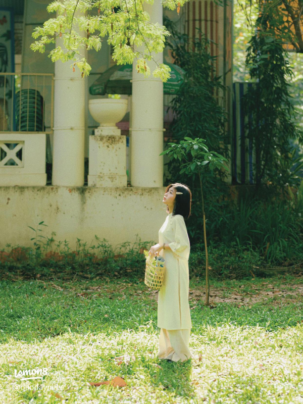 Nơi đây có khuôn viên rộng lớn nên bạn ưu tiên các góc chụp bao quát để thể hiện trọn vẹn vẻ đẹp kiến trúc. Bạn có thể chọn các trang phục sáng màu như đỏ, cam, xanh sẽ nổi bật, tránh chọn màu vàng để không bị hòa lẫn với bối cảnh.