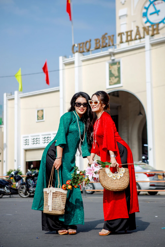 Những ngày cuối năm, chợ Bến Thành luôn luôn nô nức bởi không khí bán mua tấp nập và rất nhiều người đổ về đây chụp ảnh Tết. Với vị trí đắc địa khi nằm giữa trung tâm quận 1, chợ Bến Thành ghi điểm bởi nét kiến trúc cổ kính, mang tính biểu tượng của thành phố mang tên Bác.