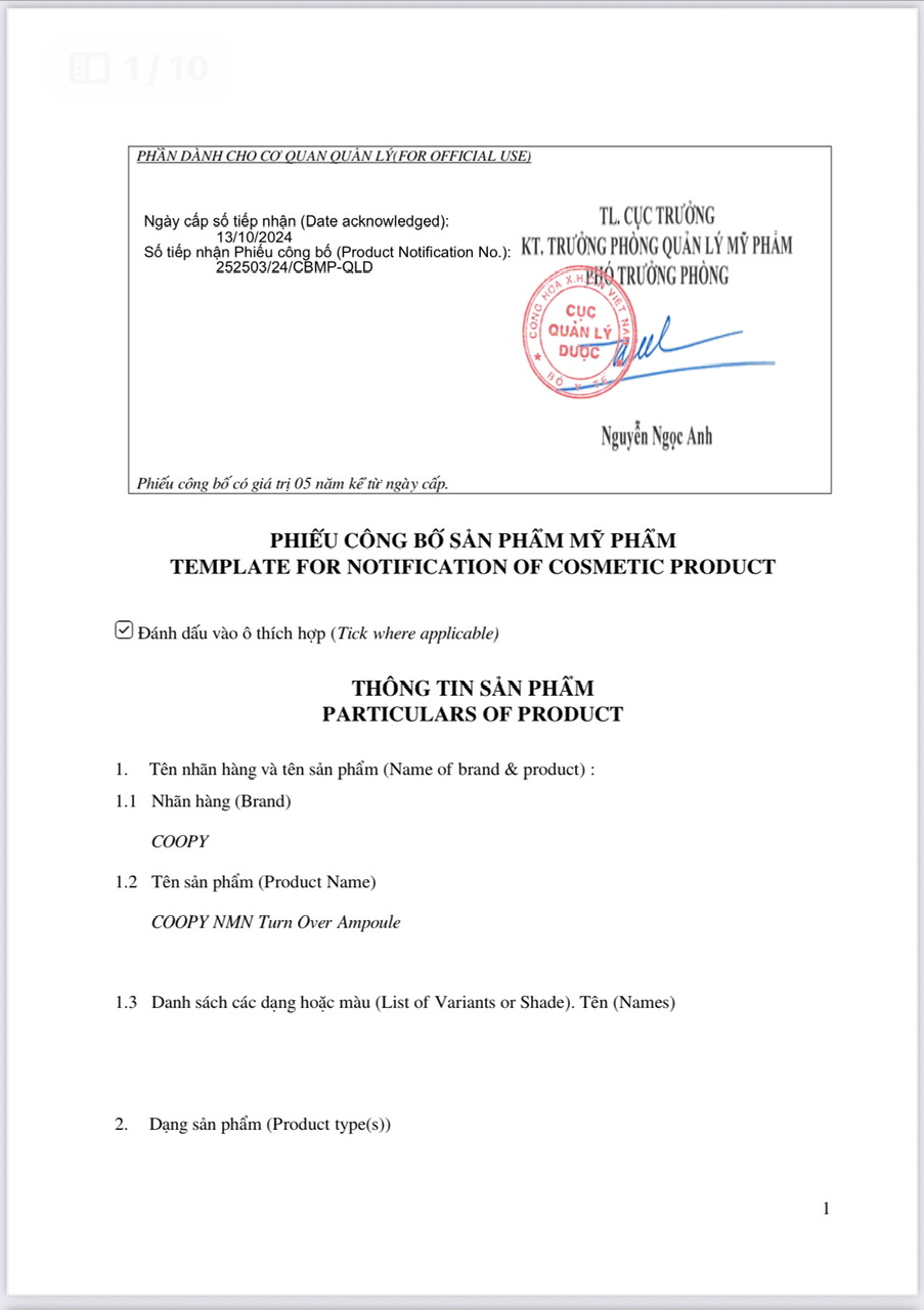 COOPY NMN Turn Over Ampoule - Huyết Thanh NMN, Tái Tạo Da, Chống Oxi Hóa