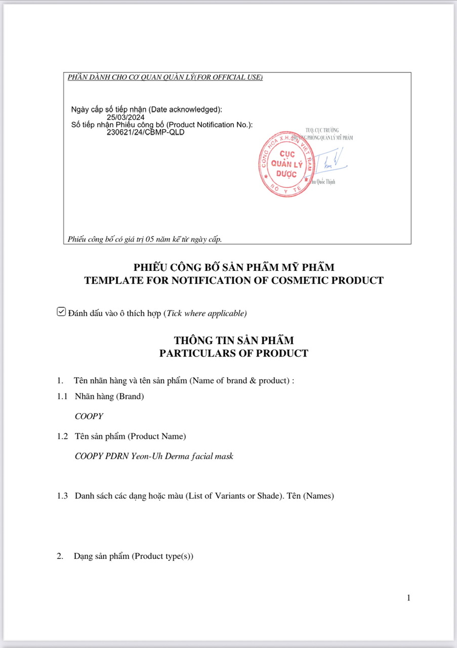 COOPY PDRN Yeon-Uh Derma Facial Mask - Mặt Nạ Dưỡng Da Cá Hồi