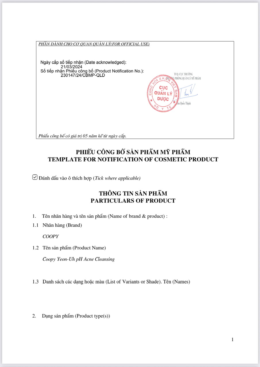 Sữa Rửa Mặt Cá Hồi Cân Bằng pH, Sạch Mụn COOPY Yeon-Uh pH Acne Cleansing được thiết kế để làm sạch sâu, hạn chế mụn mà không làm khô da. Thành phần chính từ DNA Cá hồi, Rau má, 18 loại thực vật không chỉ làm sạch mà còn nuôi dưỡng làn da khỏe mạnh, đẩy lùi các loại mụn/ trứng cá trên da... trả lại làn da căng mịn, sáng bóng, đầy sức sống. Sản phẩm đã hoàn thành kiểm nghiệm không kích ứng da, thích hợp với mọi loại da, kể cả da nhạy cảm.