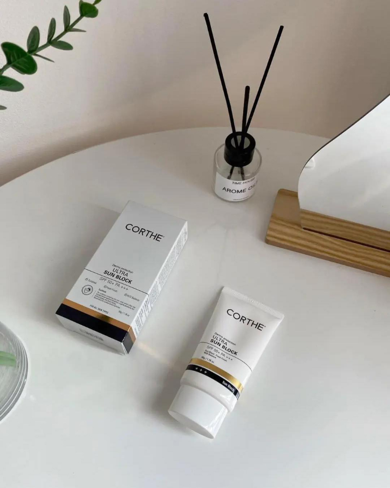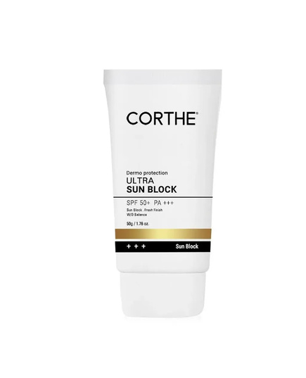 Kem Chống Nắng Corthe Dermo Protection Ultra Sun Block SPF50 PA+++ là kem chống nắng Hàn Quốc với chỉ số bảo vệ cao SPF50+ PA+++, thiết kế để cung cấp hàng rào bảo vệ toàn diện trước tia UV (UVA/UVB) và các tác nhân gây hại từ môi trường cho da. Sản phẩm thuộc nhóm chống nắng vật lý dịu nhẹ, phù hợp với nhiều loại da kể cả da dầu, da nhạy cảm hoặc da sau xâm lấn thẩm mỹ mà vẫn mang đến cảm giác thoải mái khi sử dụng hàng ngày.