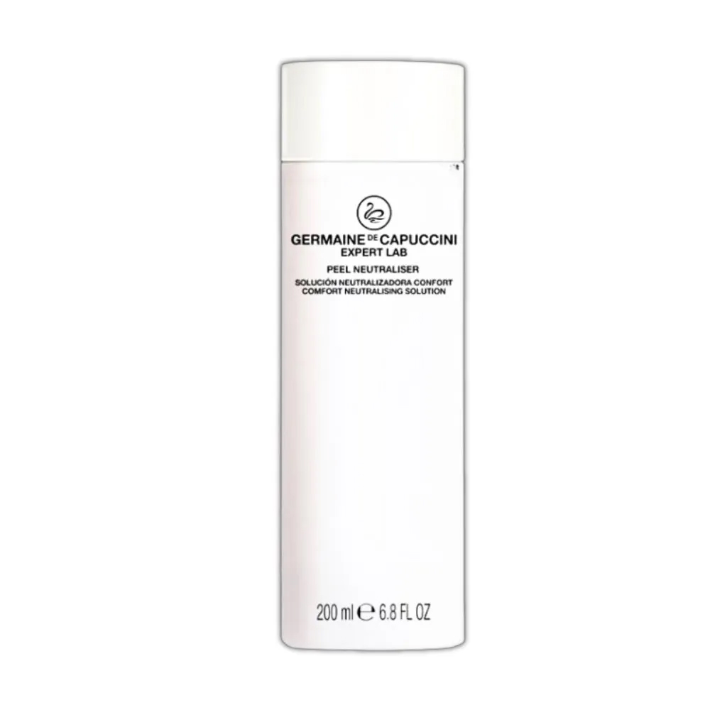 Dung Dịch Trung Hòa Sau Peel Expert Lab Peel Neutraliser Germaine De Capuccini là dung dịch trung hòa chuyên dụng được sử dụng ngay sau bước peel da hóa học, giúp cân bằng lại môi trường da sau khi tiếp xúc với các hoạt chất acid. Sản phẩm hoạt động như một bước hoàn thiện trong quy trình peel, hỗ trợ đưa da trở về trạng thái ổn định và hạn chế tình trạng acid còn lưu lại trên bề mặt.