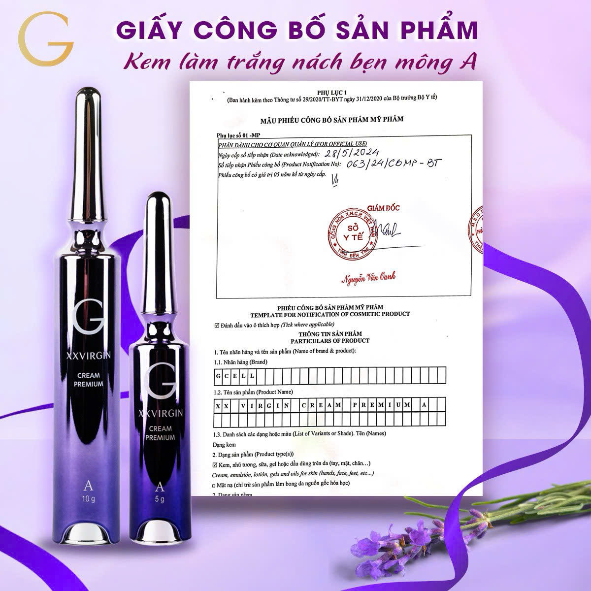 GCell Plus XX Virgin Cream Premium A - Kem Giảm Thâm Nách Bẹn Mông Mẫu Mới Nhất (10gr)