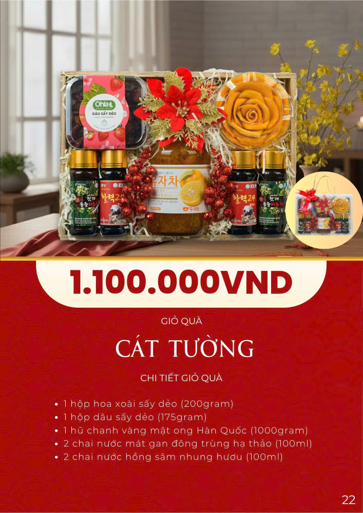 Bộ quà gồm các sản phẩm được tuyển chọn kỹ lưỡng, vừa thơm ngon, vừa hỗ trợ chăm sóc sức khỏe toàn diện, phù hợp cho mọi lứa tuổi, giúp gửi trọn tâm ý trong từng món quà xuân.