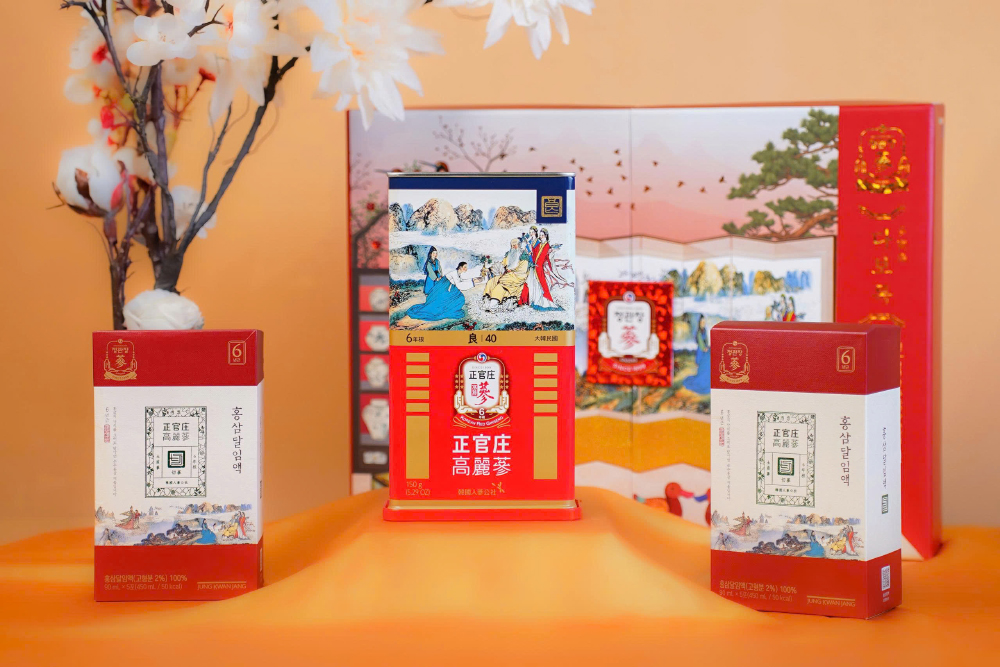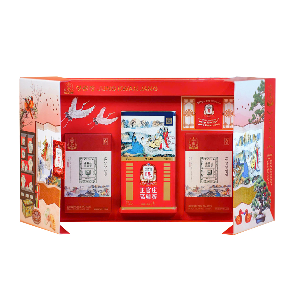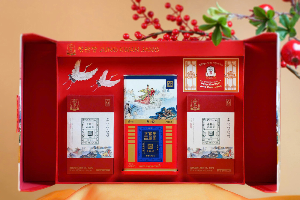 Sản phẩm hồng sâm cao cấp Jung Kwan Jang trong set quà Thọ Phúc Khang Ninh mang ý nghĩa chăm sóc sức khỏe toàn diện, hỗ trợ cơ thể luôn tràn đầy năng lượng và tinh thần minh mẫn mỗi ngày.