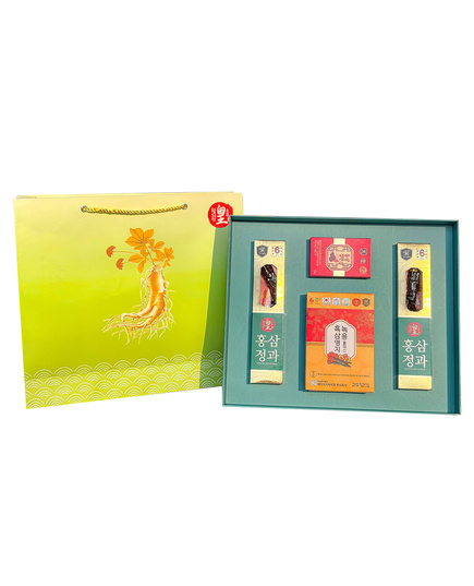 Set quà bao gồm các sản phẩm hồng sâm Hàn Quốc giàu dưỡng chất, sản phẩm hỗ trợ tăng sức đề kháng, cùng các lựa chọn có tính biểu tượng cho sự quan tâm và chăm sóc. Thiết kế sang trọng, thông điệp ý nghĩa của mỗi món trong bộ quà góp phần làm tăng giá trị tặng quà, tạo nên trải nghiệm trọn vẹn và đáng nhớ.