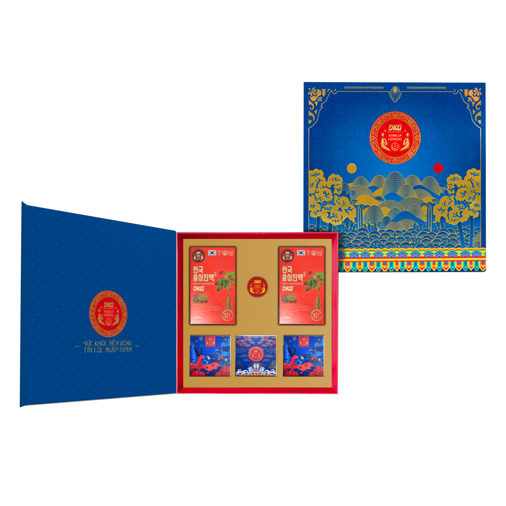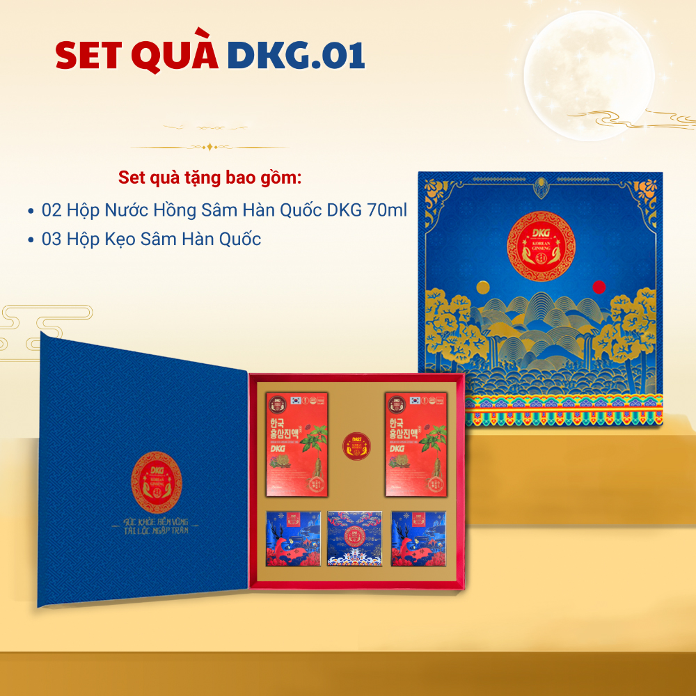 Được nghiên cứu, chọn lọc từ những sản phẩm từ nhân sâm cao cấp Hàn Quốc, set quà DKG.01 mang trong mình tinh hoa truyền thống kết hợp cùng nghệ thuật tinh xảo. Từng chi tiết, từ chất liệu hộp, màu sắc thiết kế cho đến cách sắp đặt sản phẩm, đều toát lên vẻ quý phái, trang nhã và đẳng cấp.