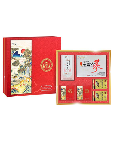 - 01 Hộp Trà Hồng Sâm 3g*50 gói/ Hộp: Được chiết xuất từ hồng sâm 6 năm tuổi Hàn Quốc, trà mang hương vị đậm đà, dễ uống, giúp tỉnh táo tinh thần, giảm căng thẳng và bồi bổ sức khỏe hàng ngày. Từng gói trà nhỏ gọn, tiện lợi, phù hợp để thưởng thức ở mọi lúc, mọi nơi. Đây không chỉ là thức uống thảo mộc thanh khiết, mà còn là món quà tri kỷ, gửi gắm lời chúc an khang và sự quan tâm tinh tế đến người nhận.