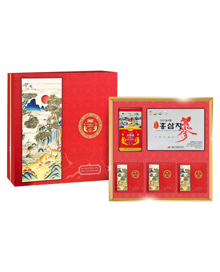 - 01 Hộp Trà Hồng Sâm 3g*50 gói/ Hộp: Được chiết xuất từ hồng sâm 6 năm tuổi Hàn Quốc, trà mang hương vị đậm đà, dễ uống, giúp tỉnh táo tinh thần, giảm căng thẳng và bồi bổ sức khỏe hàng ngày. Từng gói trà nhỏ gọn, tiện lợi, phù hợp để thưởng thức ở mọi lúc, mọi nơi. Đây không chỉ là thức uống thảo mộc thanh khiết, mà còn là món quà tri kỷ, gửi gắm lời chúc an khang và sự quan tâm tinh tế đến người nhận.