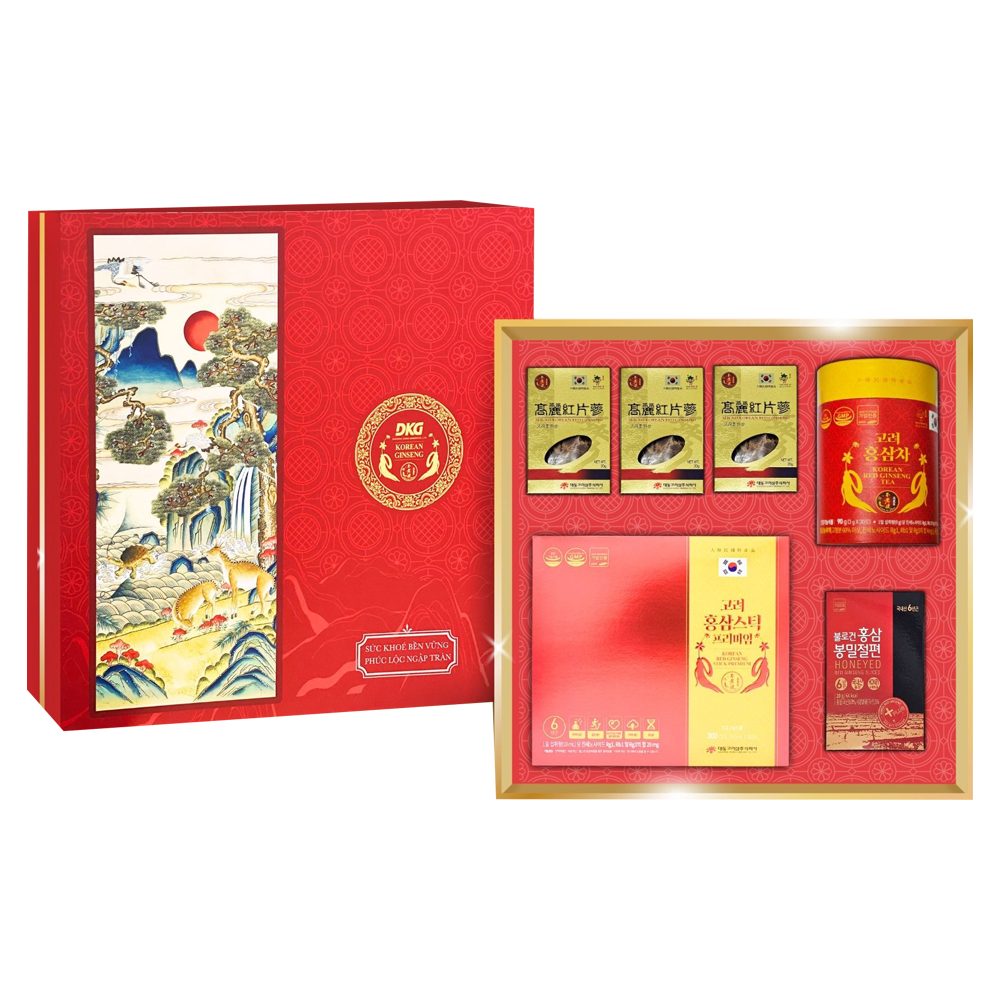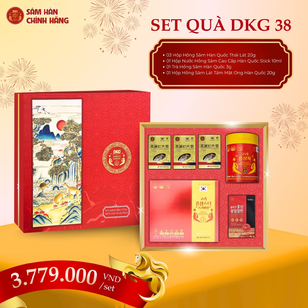 Là phiên bản cận cao cấp trong bộ sưu tập quà Tết 2026, set quà DKG.38 được thiết kế với sự lựa chọn tinh hoa sản phẩm nhân sâm thượng hạng. Hộp quà mang phong cách hiện đại nhưng vẫn giữ nét sang trọng truyền thống, phù hợp để dành tặng đối tác, lãnh đạo hoặc người thân đặc biệt. Đây là món quà thể hiện sự trân trọng, lời chúc an khang - thịnh vượng trong năm mới. Không chỉ có giá trị sức khỏe, DKG.38 còn nâng tầm mối quan hệ và thể hiện gu chọn quà tinh tế của người trao tặng. Với DKG.38, mọi lời chúc Tết đều trở nên ý nghĩa và đáng nhớ.