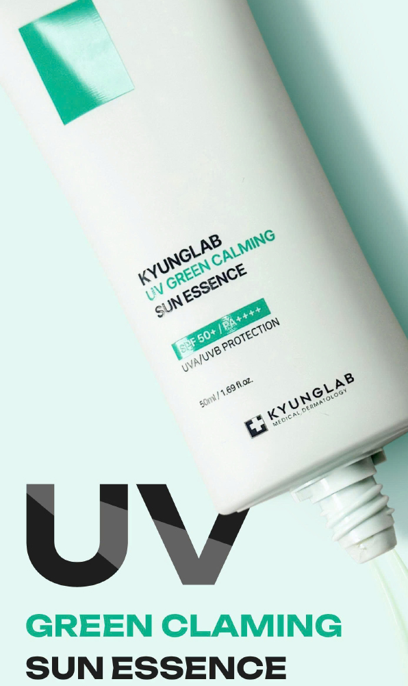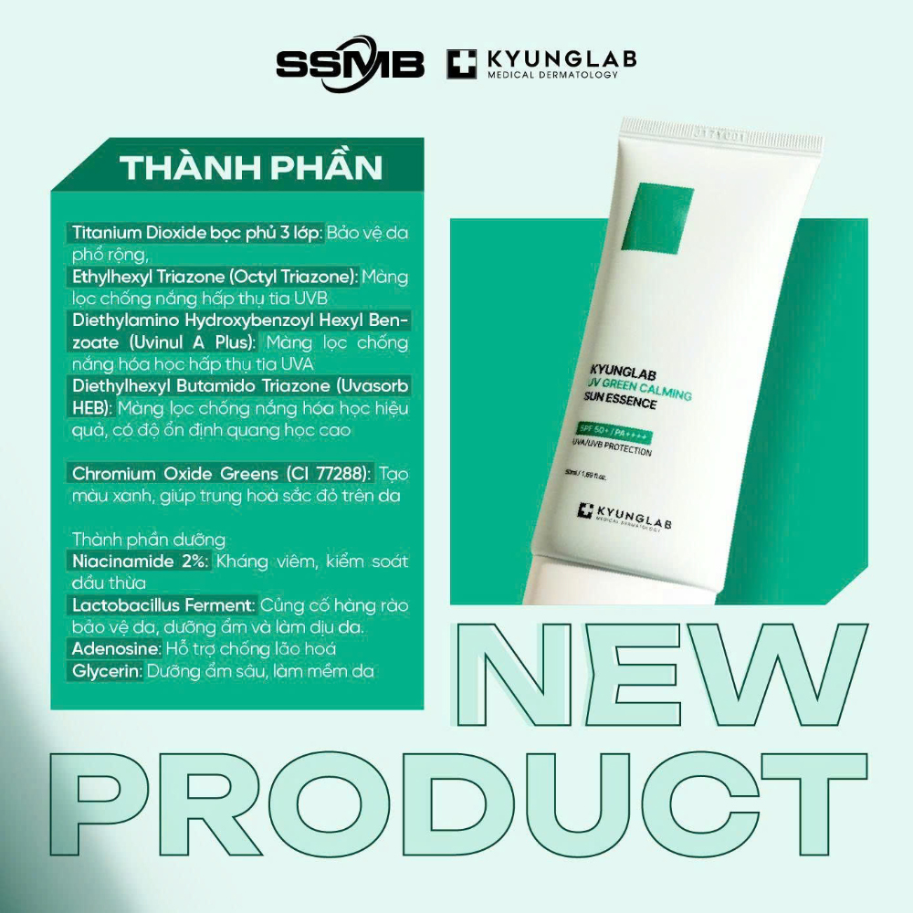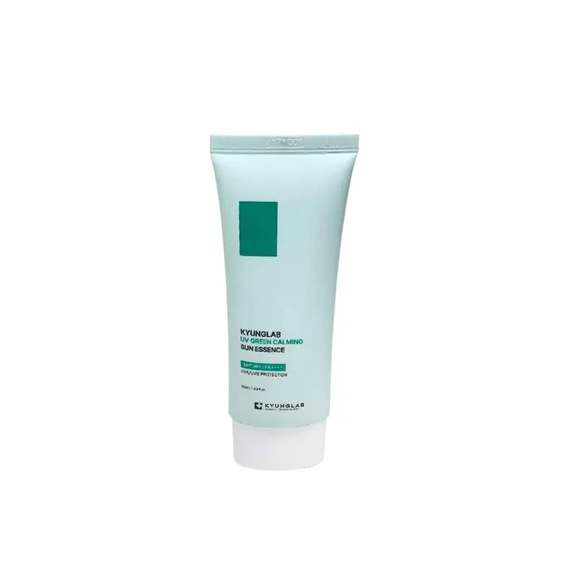 Kem Chống Nắng Nâng Tone Kyung Lab UV Green Calming Sun Essence phiên bản màu xanh, không chỉ tập trung vào khả năng hỗ trợ chống nắng phổ rộng bảo vệ da tránh xa tác hại của tia UVA, UVB, làm dịu da, mà còn sở hữu sắc xanh giúp trung hòa sắc đỏ, nâng tông nhẹ nhàng, hỗ trợ che phủ các vùng da ửng đỏ một cách tối ưu, được thiết kế chuyên biệt dành cho làn da nhạy cảm, da dễ đỏ, da đỏ do mỏng yếu hàng rào bảo vệ da, da Rosacea (cơ địa da đỏ), da đỏ do tiếp xúc môi trường, da sau laser, lăn phi kim đã lành thương, da treatment nhẹ.