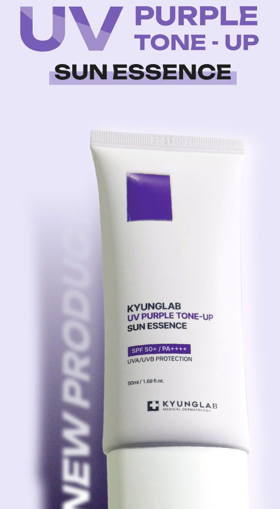 Kem Chống Nắng Nâng Tone Kyung Lab UV Purple Tone-Up Sun Essence bảo vệ da với 4 màng lọc hiện đại trong đó 1 lớp lọc vật lý được bọc phủ và 3 màng lọc hóa học. Khi thoa cho hiệu ứng nâng tông da tự nhiên, trong trẻo, căng bóng nhẹ, tươi tắn ngay lập tức. Sắc tím trong kem chống nắng giúp trung hòa sắc vàng trên da, che khuyết điểm nhẹ, làm đều màu da.