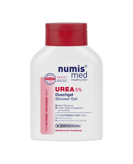 Gel Tắm Cho Da Khô Vảy Nến Numis Med Shower Gel Urea 5% là giải pháp làm sạch dịu nhẹ dành cho làn da khô đến rất khô, thậm chí da bong vảy, viêm da cơ địa, chàm hay vảy nến. Với công thức chứa 5% Urea kết hợp cùng Glycerin và Sodium Lactate, sản phẩm không chỉ loại bỏ bụi bẩn, mồ hôi mà còn duy trì độ ẩm thiết yếu, giúp da mềm mại và mịn màng sau khi tắm.
