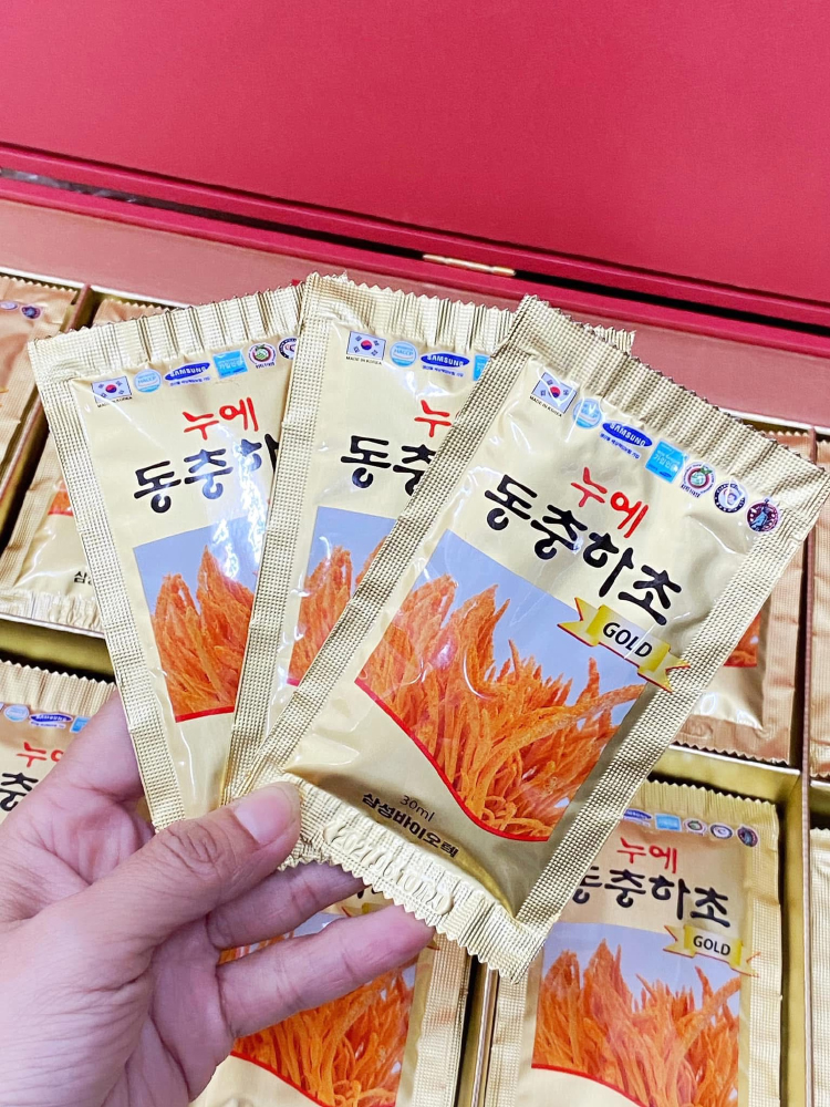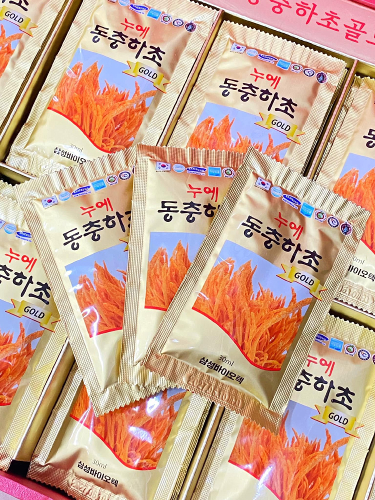 Nước đông trùng hạ thảo Hàn Quốc với thành phần chính là vị thuốc đông trùng hạ thảo (một vị thuốc quý hiếm của Đông y) có tác dụng bổ thận tráng dương, hỗ trợ làm đẹp da, tăng cường chất đề kháng và cải thiện tình trạng sức khỏe của người sử dụng.