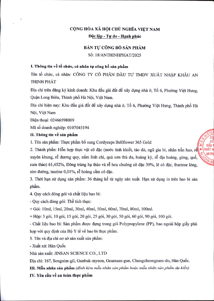 Nước Đông Trùng Hạ Thảo, Linh Chi HankwanjanG Cordyceps Bellflower 365 Gold