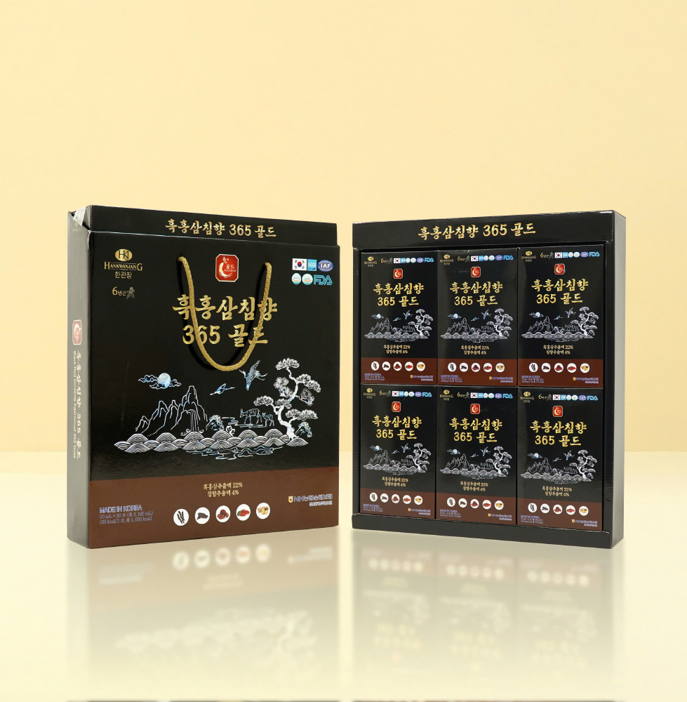 Nước Hắc Hồng Sâm HankwanjanG Premium 6-Year-Old Black Red Ginseng Gold là một dòng sản phẩm được chiết xuất từ những củ hắc sâm 6 năm tuổi cao cấp. Những củ hắc sâm này được mang đi tinh luyện kết hợp với nhiều thảo dược có lợi cho sức khỏe, chiết thành dạng nước giữ nguyên hương vị vốn có của nhân sâm, dễ sử dụng và đặc biệt giúp tăng cường sức khỏe và đem đến hiệu quả vượt trội cho mọi đối tượng, Đặc biệt, phù hợp với những người mới ốm dậy, người bận rộn, người bị căng thẳng…