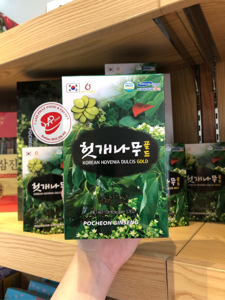 Nước Uống Bổ Gan Pocheon Korean Hovenia Dulcis Gold (30 gói x 70 ml) được chiết xuất từ cây Hovenia Dulcis là một loại thảo dược quý đã được các nhà khoa học chứng minh có tác dụng tích cực trong việc tăng cường chức năng gan. Giúp thải trừ các độc tố có hại cho gan và hỗ trợ khả năng phục hồi gan trong các trường hợp nhiễm bệnh gan.