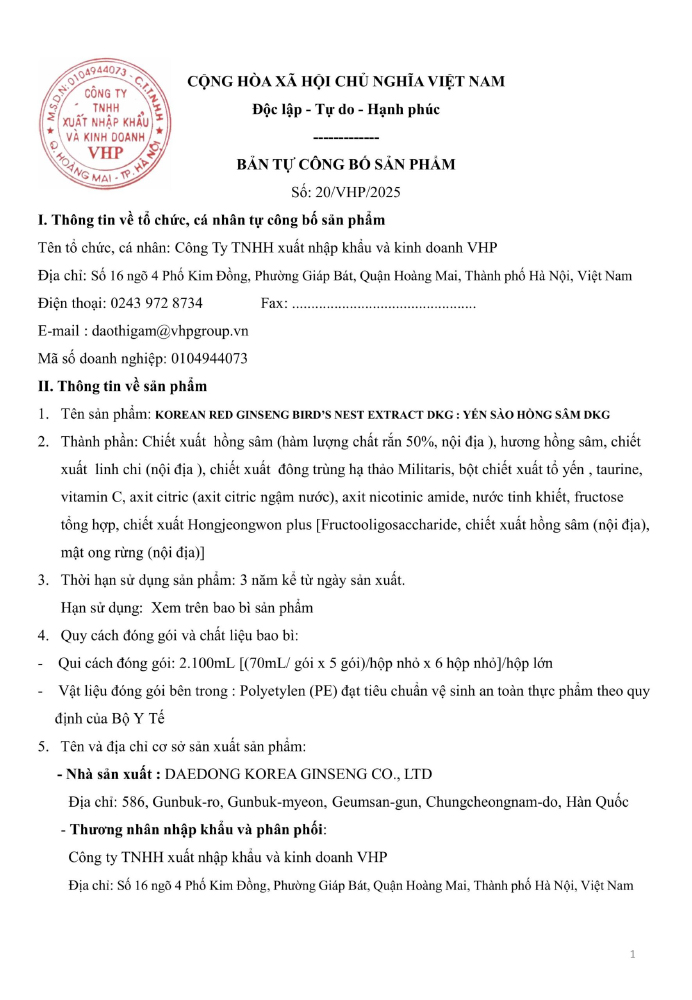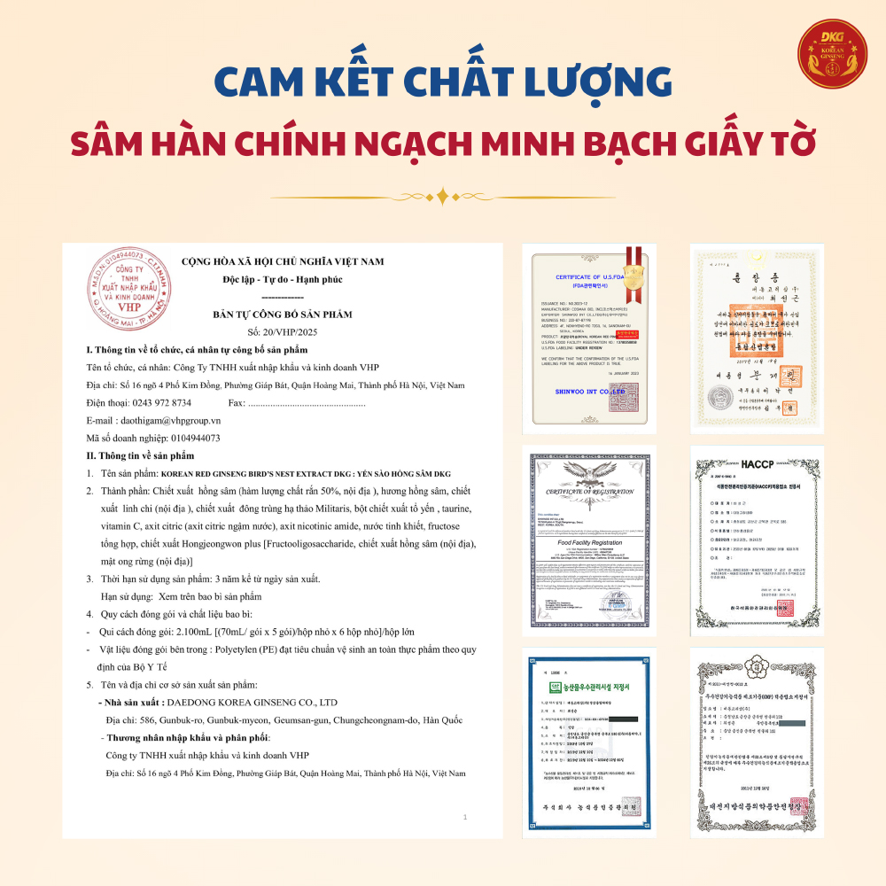 Được sản xuất theo công nghệ hiện đại và kiểm soát chất lượng nghiêm ngặt, nước yến sào hồng sâm Daedong không chỉ cung cấp nguồn dinh dưỡng tự nhiên mà còn hỗ trợ tăng cường hệ miễn dịch, bồi bổ cơ thể, nâng cao sức khỏe tổng thể và giải phóng năng lượng cho ngày dài năng động. Đây là lựa chọn lý tưởng cho những ai quan tâm đến sức khỏe lâu dài, trẻ hóa cơ thể và phục hồi năng lượng sau lao động, học tập hay vận động mạnh.