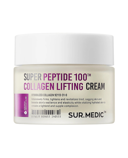 Kem Dưỡng Tái Tạo Phục Hồi Da Sur.Medic Super Peptide 100TM Collagen Lifting Cream với công thức tập trung vào peptide và collagen, hướng đến việc cải thiện độ đàn hồi và mang lại diện mạo săn chắc, mịn màng hơn cho làn da. Sản phẩm kết hợp nhiều loại peptide cùng collagen thủy phân, giúp bổ sung dưỡng chất và duy trì độ ẩm cần thiết, phù hợp với làn da thiếu sức sống hoặc có dấu hiệu lão hóa.