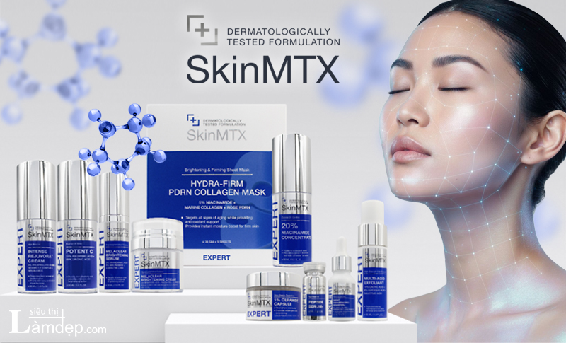 SkinMTX: Là thương hiệu dược mỹ phẩm chuyên sâu (Dermatological Grade) đến từ Thụy Sĩ, nổi tiếng với các công thức tập trung vào hiệu quả lâm sàng và độ tinh khiết của hoạt chất. Các sản phẩm của hãng thường được phân loại vào dòng Expert (Chuyên gia) nhờ bảng thành phần nồng độ cao nhưng tối ưu khả năng dung nạp.