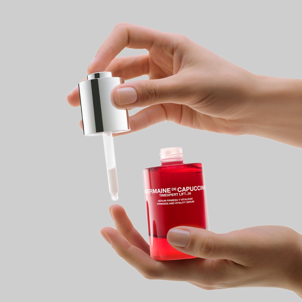 Tinh Chất Nâng Cơ, Căng Da Timexpert Lift-In Firmness And Vitality Serum Germaine De Capuccini là tinh chất nâng cơ chuyên sâu ứng dụng công nghệ hiện đại, tập trung cải thiện độ săn chắc và tái định hình đường nét khuôn mặt. Công thức hoạt động theo cơ chế “3 tác động”: nâng - làm đầy - củng cố cấu trúc da, giúp tối ưu hiệu quả cải thiện các dấu hiệu lão hóa trên nhiều tầng da.